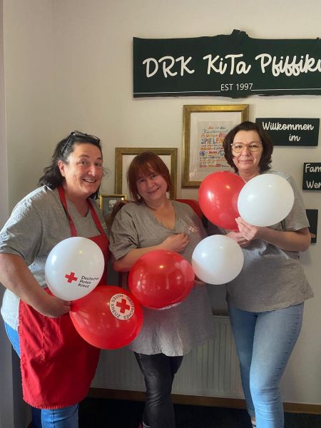 Auch in unseren Kitas und Ortsvereinen wurde der Weltrotkreuztag natürlich ebenfalls ausgiebig gefeiert. So standen einige Rotkreuzler*innen aus unserem Ortsverein Bönen bereits morgens um 6 Uhr am Bahnhof und verteilten Kaffee und Tee an die Pendler*innen, während in den einzelnen Kitas gebastelt, genascht und über die Geschichte des Roten Kreuzes aufgeklärt wurde.