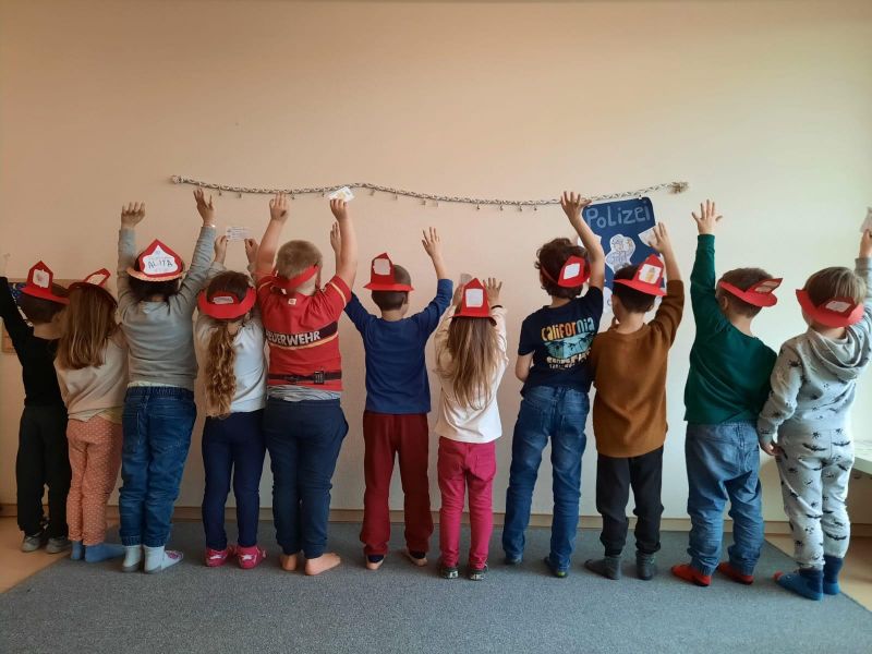 Um das herauszufinden, beschäftigten sich die „Raketen“ – die ältesten Kinder der Kita, die in diesem Sommer auf die Grundschule wechseln – in den letzten drei Wochen schon intensiv mit der Feuerwehr, der Polizei und der Apotheke. Dabei wurde sich verkleidet, Ausrüstung gebastelt, Rollenspiele gespielt und so ganz nebenbei viel über die einzelnen Arbeitsplätze gelernt. „Für diese Woche steht mit dem Berufsbild „Landwirt*in“ nochmal ein ganz anderes spannendes Thema auf dem Programm“, freut sich die stellvertretende Kita-Leiterin, Michelle Barkawitz.
