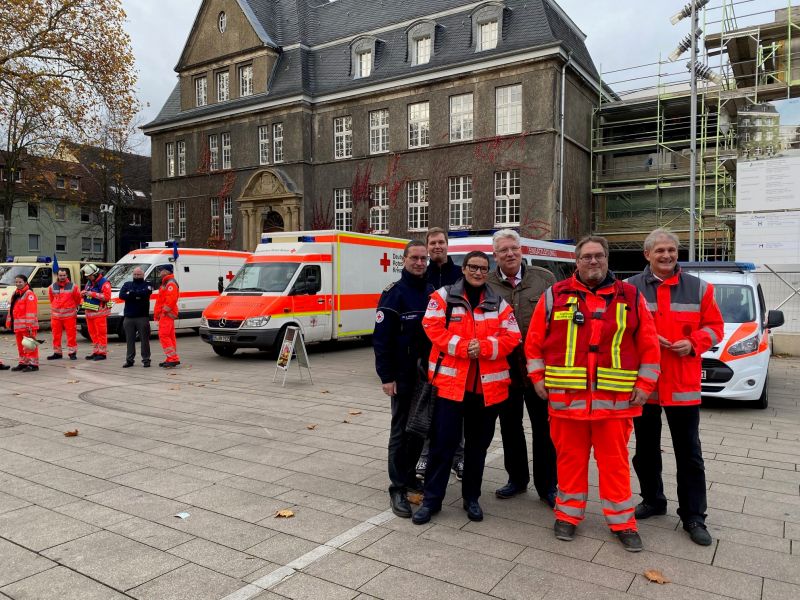 Um interessierten Bürgerinnen und Bürgern genau diese Vielfalt zu zeigen und ihnen einen Blick hinter die Kulissen von Einsatzfahrzeugen, Krankentransportwagen & Co. zu bieten, hatte sich am Samstagmorgen die komplette Katastrophenschutz-Einsatzeinheit UN 03 in voller Stärke von 33 DRKler*innen samt aller zugehörigen Fahrzeuge im Fröndenberger Ulmke Forum versammelt.