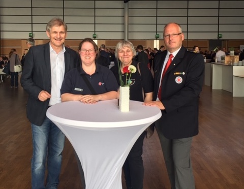Unser Vorstandsvorsitzender Michael Makiolla, Rotkreuzleiterin Anika Knutti, JRK-Leiterin Regina Klose und der stellvertretende Rotkreuzleiter Marko Wilke freuten sich über die Einladung in die Landeshauptstadt und nutzen die Gelegenheit zum Austausch mit politischen Entscheidungsträgern und den vielen ehren- und hauptamtlichen Gästen.