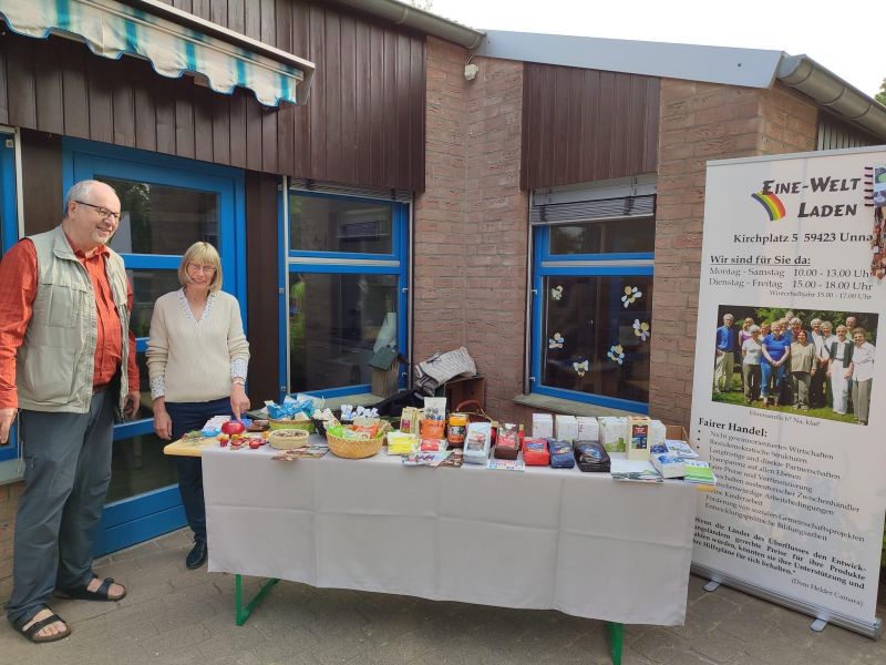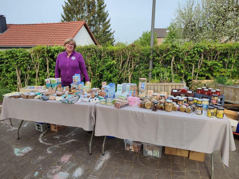 Gerne stellt die Kita im Rahmen des Sommerfestes auch ihre Kooperationspartner vor und präsentierte den Besucher*innen, wo für den Bedarf der Kita im Alltag nachhaltige und vor allem faire Produkte eingekauft werden. Mit dabei war ein ortsansässiger Imker sowie der lokale Bauer „Louven“, der „Eine-Welt Laden“ und „Unverpackt“. „Es ist einfach wichtig den Eltern zu zeigen, wie es gehen kann.“, erläutert Sandra Weniger. Denn nachdem die Kita im Jahr 2021 als „FaireKITA“ zertifiziert wurde, legen die Erzieher*innen ganz besonders viel Wert auf Nachhaltigkeit und den Kauf von fairen Produkten auch innerhalb der Kita.